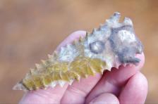 I am selling my frame of Pinetrees, one of my favorite points. I chose these points over time because of the uniqueness of the material, symmetry and color. I am unsure of the knappers on these, they are all thin and very well made! Shipped Free! |