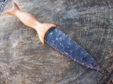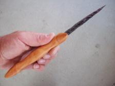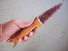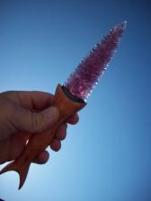 one of four 'Elemental' knives crafted from Blenko glass. the handle is cherry wood hafted with PPG.