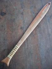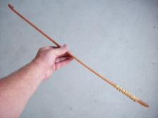 made from a single solid piece of clear cherry with a deer hide grip wrap. add three 6' tonkin cane darts for $50.