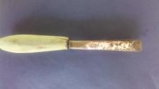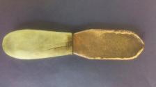 This is a old school paddle billet, came in a box of old flintknapping tools I acquired, I've used it copper goes all the way thru the handle from what I can tell , this thing is solid and has seen its fair share of stone, and still solid enough to knock off tons more.paddle total length is 7" copper 3½" length 1½" width ⅜" thick |