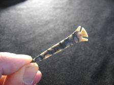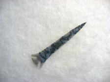 A finely knapped Agee type point made from Flint Ridge material. Blueish gray color with unique dark blue patterned through it. Real nice! |