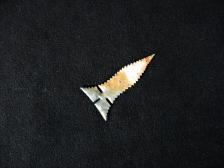 Colorful little Mound 72 variety Cahokia point from Flint Ridge material. Blue to white with little red speckles. Thin with deep notching. |