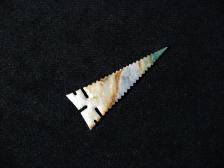 Great color in this Flint Ridge Cahokia. Red, white, blues and a nice green color in the tip. Thin, well flaked and tight notching. |