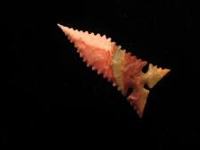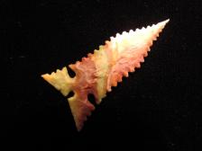 This nice little multi colored serrated style Cahokia is made from a colorful piece of Flint Ridge material. Reddish brown, green and peach all swirled together |