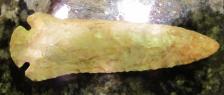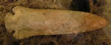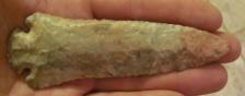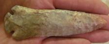 This is a pretty nice dovetail made of pink heat treated ridge. This knife has a nice backbone to it, a ground base and some beveling. It's over 4 1/2 inches long. This one has an authentic feel to it. |