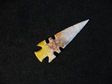 Here's a nice looking Duran point made from Nethers Flint Ridge flint. This unique point type is found in southwest Texas and into New Mexico. Nice color and pattern in this one. |