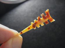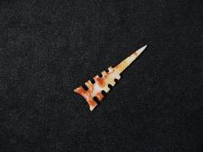 Another variation of a Hohokam Snaketown Point made from Flint Ridge material. Tan colored with reddish pattern. Fine and delicate point. |