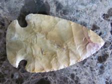This is a nice average sized hopewell point made of heated flint ridge flint. I both dug and chipped this point. It really is a nice point with good flaking on both sides. |