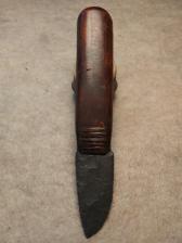Cool little knife I knapped from Flint Ridge that comes from Ohio into a woodland style blade.. The handle is aged wormy apple wood that I polished and it has lots of character ... The blade is set with epoxy and lashed with real deer sinew and it 100% functional. |