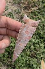 Here is a nice wintu made from flint ridge. It displays beautiful colors , great flake patterns and super thin serrated edges. Thanks for viewing |