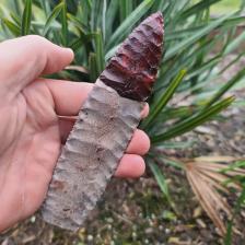 A nice flaked and colored flint river blade