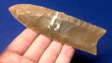 Clovis point made of high grade raw Flint River chert from Georgia. Direct percussion fluted.