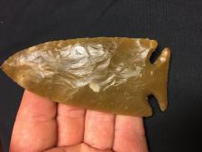 First stage Kirk with a wide bevel made from high grade translucent unheated flint river chert |