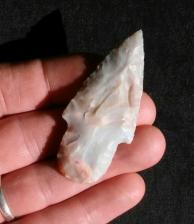 Glossy Flintridge Chalcedony with Tan,Rose and Pink limestone inclusions and some small quartz inclusions. This is the material a lot of the Adenas around here are made of. Chipped with bone and antler.