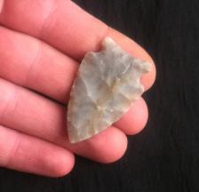 Raw Flintridge Green,Grey and Tan from the corner of Bear Hollow by the park. Beautiful point chipped with antler and notched with Buffalo rib bone.