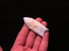 Creamy White and Grey mottled Flintridge Chalcedony with a Pinkish Orange spot on one side. Base is ground.
