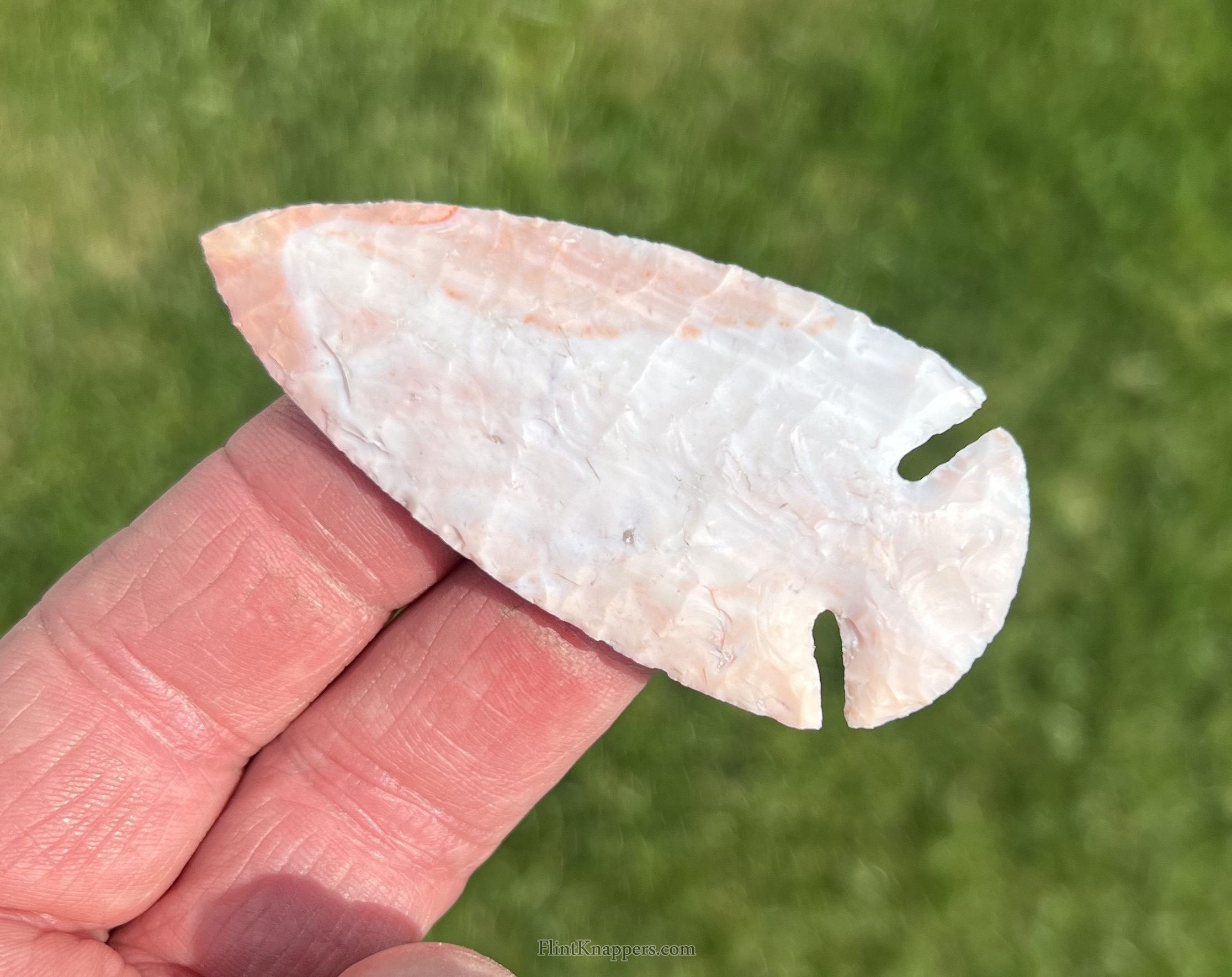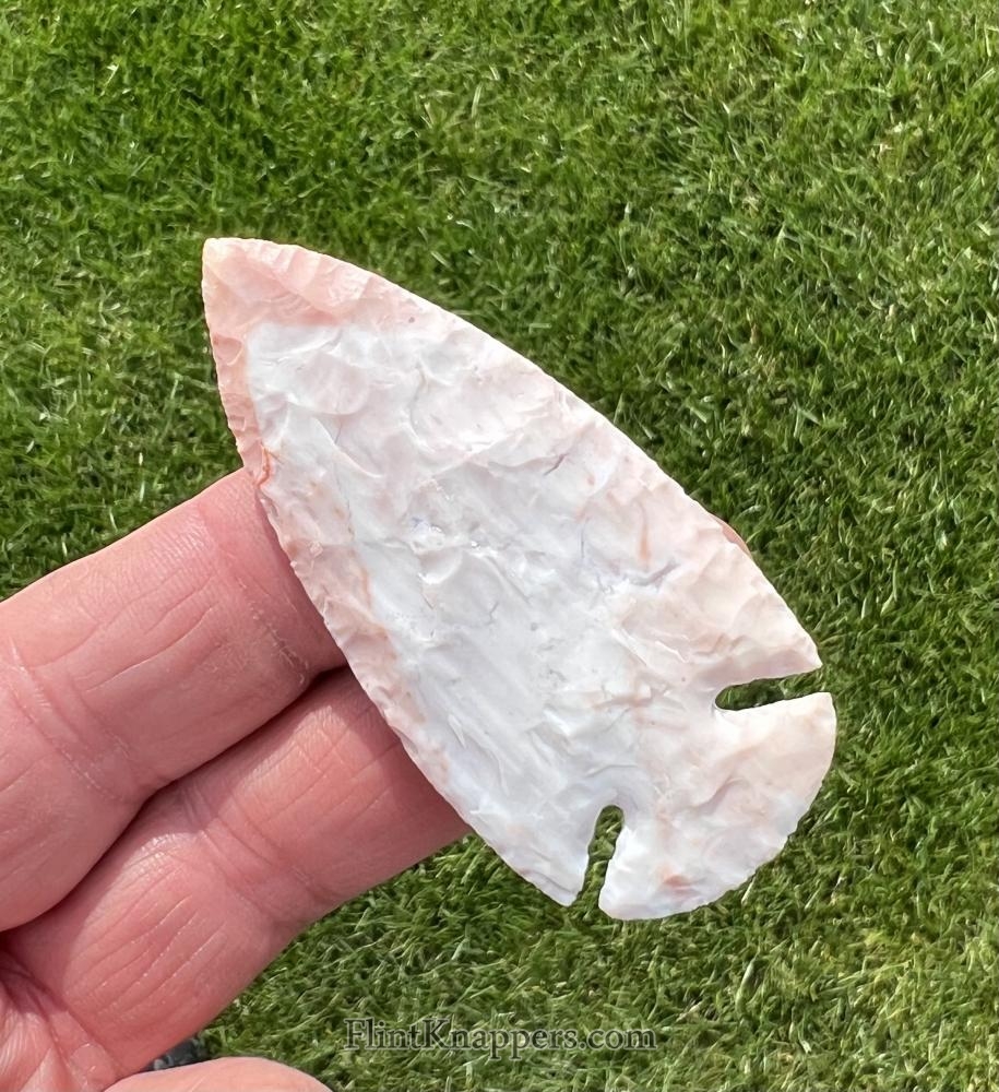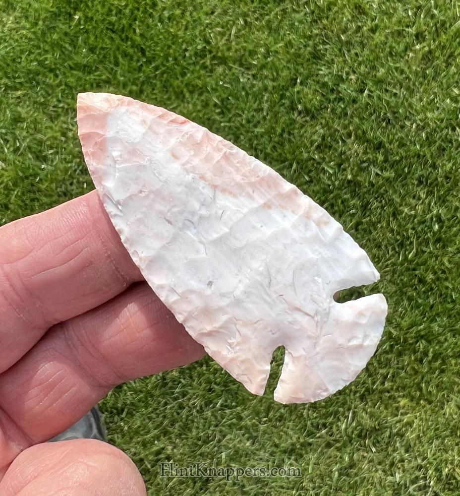 A very well made dovetail point with deep notches, made from colorful flintridge material. |