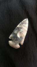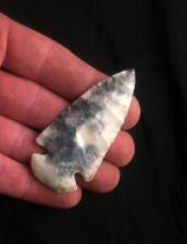 Flintridge Dovetail made with antler and bone notched with Buffalo rib bone. Flintridge Blues,Browns,Greys,Purples and White. Nice convexity on one side somewhat flat on the other with a slight right hand bevel. |