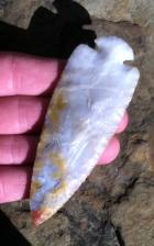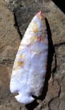 Beautiful Flintridge semi translucent Chalcedony in Pink,Grey,Red,Gold,Orange,Blue and White. Billeted with Whitetail main beam blade has a nice thickness, notches and edge work done with antler tine. Blade is beveled and base is ground. |