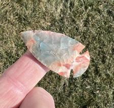A sweet little dovetail point made from some prime colorful flintridge material. Roys flint. Been in my keeper case for a few years. |
