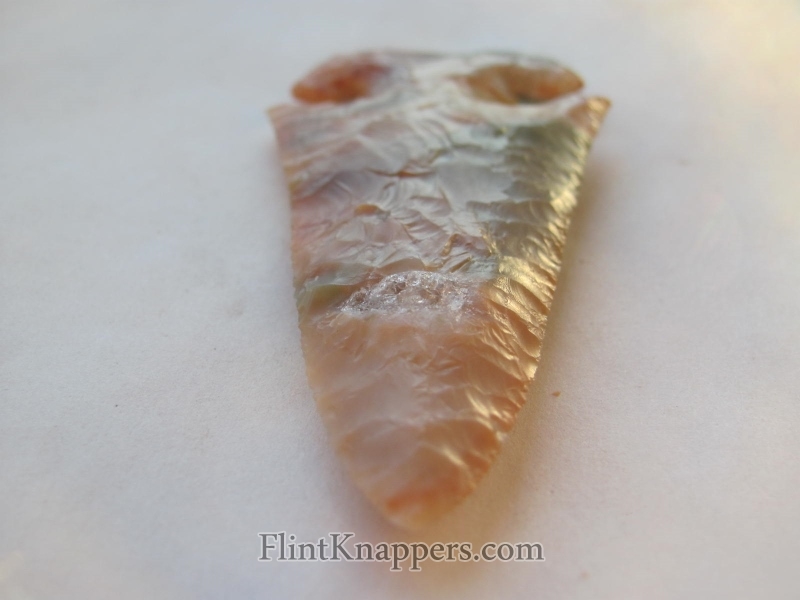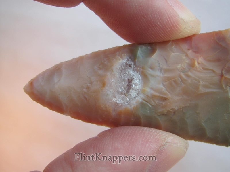 Execution is clean throughout — tight, controlled flaking, crisp E-notches, and a needle tip that survived intact despite the crystal inclusion. This one took skill and a little nerve. |