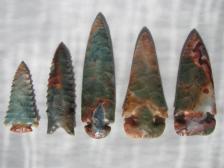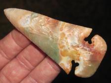 This is a flat-out gorgeous piece. Knapped from premium Ohio Flintridge flint, this 3¾" E-notch point shows off everything that makes Flintridge so sought after — swirling greens, creamy whites, and burnt orange flowing through the stone like a painting. Both faces photograph beautifully, each showing a slightly different face of the same spectacular material.