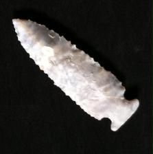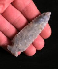 Raw unheated Blue/Grey Flintridge from across from the park chipped with antler from start to finish and has a great diamond cross section and a few quartz inclusions some White clouding and a Blue spot toward the tip and base and notches are ground.