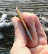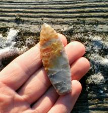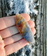 Raw(unheated) Flintridge in Caramel,Blue,Purple,Red and Yellow. I've found thin ones like this in Ohio that's why I made this piece. Base is ground 1/3 of the point. |