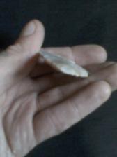 Glossy Flintridge Pinkish Tan with Orange highlights and milky quartz lightning inclusions at the base and tip, slightly beveled. Killer Deep Notch.