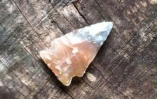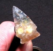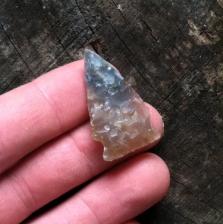Awsome peice of Flintridge Moss Agate I picked up off a site in a cornfield I hunted this Spring. Highly translucent gem Blue and Caramel. Chipped with antler tine. An awsome replica of the little Hopewell points I find in the feilds.