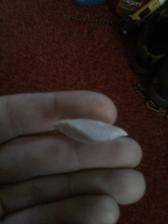 Glossy snow white Flintridge with a couple of lt. Blue quartz inclusions. Nice bevel,base is ground.