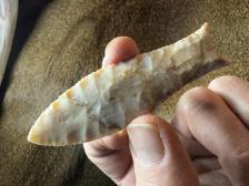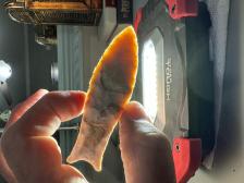 Beautiful sweeping point made from semi translucent Coastal Plains chert from Brier Creek! Percussion and pressure flaked, hafting area is ground.Thanks for looking! |