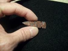I Knapped this side notch out of some Rare Colorado Flower Agate. You wil;l see several Rosebuds in this point.Hard to find, geting closer to the well hidden Deposit of this elusive material.Thanks for your interest and have a great day.Will combine shipping. |