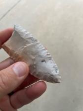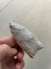 A small paleo point. Nice flute on one face along with pressure flaking along the margins.