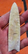 Fluted point out of heat treated High Ridge Cresent chert from Missouri. |