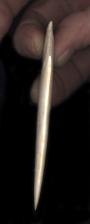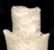 ” WOW this is cool. “ I did the imaging at 300 dpi so do not be afraid to take a close look. The stem remains flaked but the body has been ground for FOG knapping. You will see grind scars running in all directions and into the C notching at the shoulders. There is a slight hinge at one of the C notches that shows great patina. There is a fresh break at one of the shoulders that I did “Ouch”, but it did reveal the original heat treated surface the knapper was seeing at the time of production. This knapper knew FOG. It is ground exactly like I would have done it. But there is one difference. The platforms are set up of for antler not copper pressure flaking. Let us all agree on one thing. “First and foremost this FOG knapper had to be a very good percussion knapper or at least knew one.” The less to hand grind off the better, I know this first hand. Think about it. In the Stone Age rocks were either GROUND into shape or KNAPPED into shape,