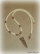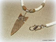 Yes you read the title correctly ... the tan colored beads are made of petrified dinosaur poop (agate) from Utah, and the white disc beads are from modern carved bones.  And to add to it's uniqueness, the arrowhead was flintknapped by James Bowden from Washington petrified wood (chert).   The arrowhead measures 1 & 3/4 in. by 5/8 in. and was intentionally dulled on the edges for comfort while being worn. The necklace was designed to be worn by MEN or WOMEN and measures 22 & 1/2 inches long.  The wire wrap and clasp are sterling silver.
