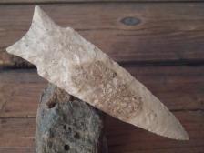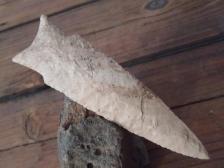 This rock was received in a trade with a fellow knapper in France, and I was able to chip it into this handsome piece. It has an English toffee look to me. |