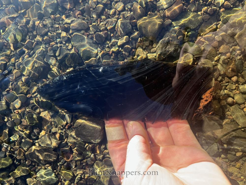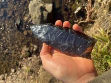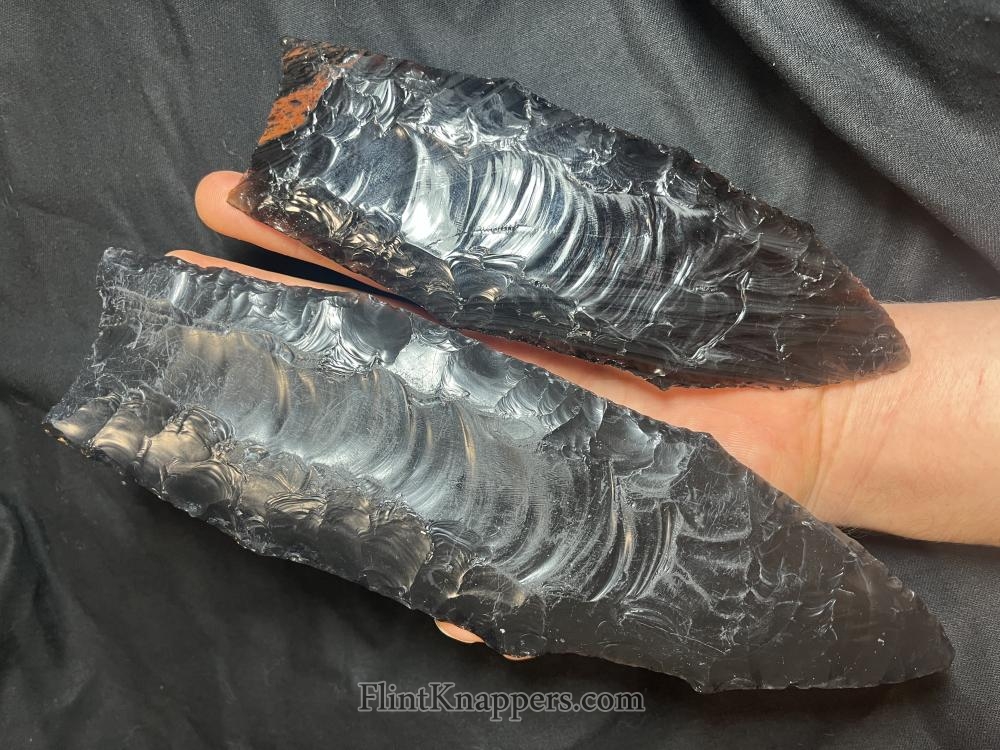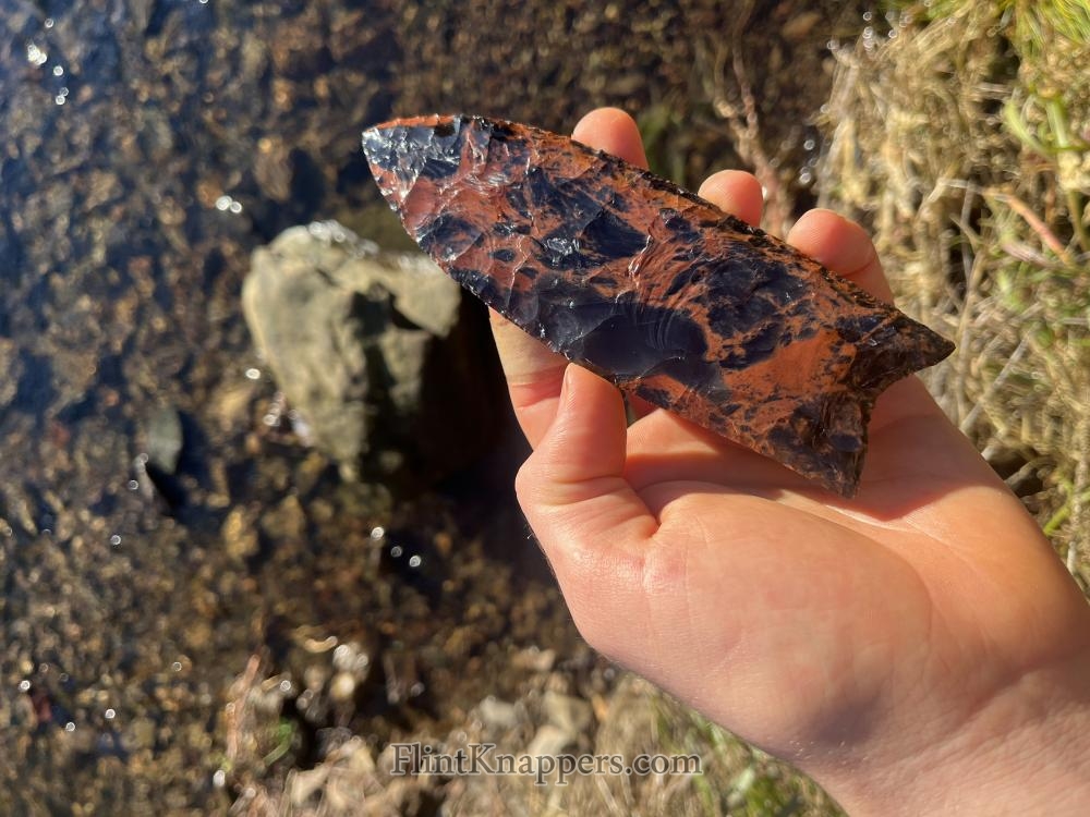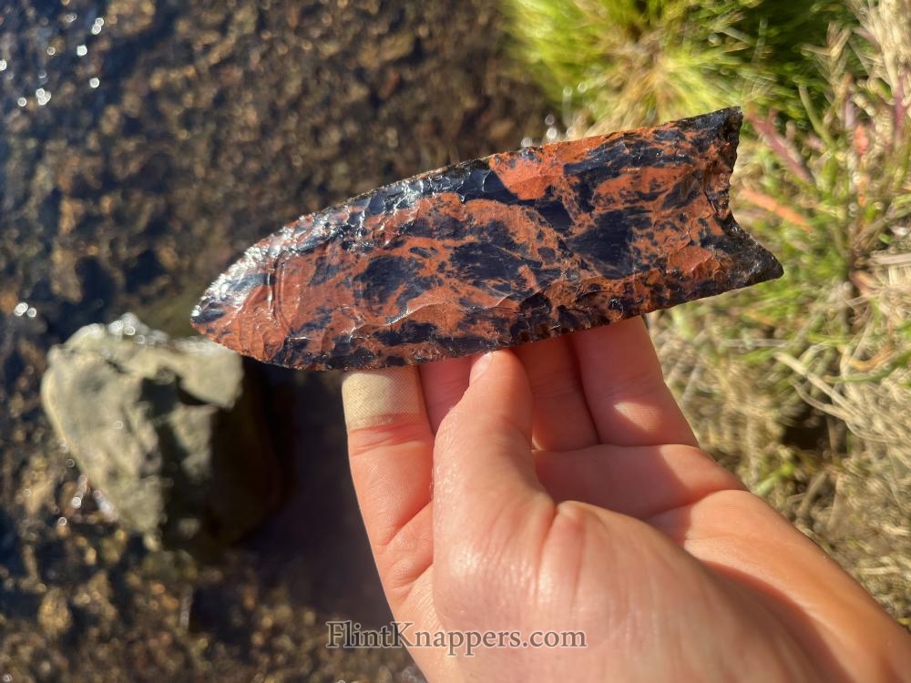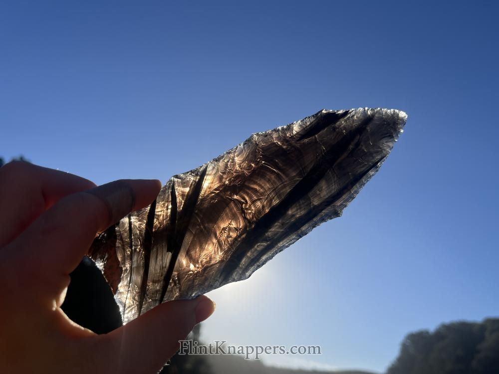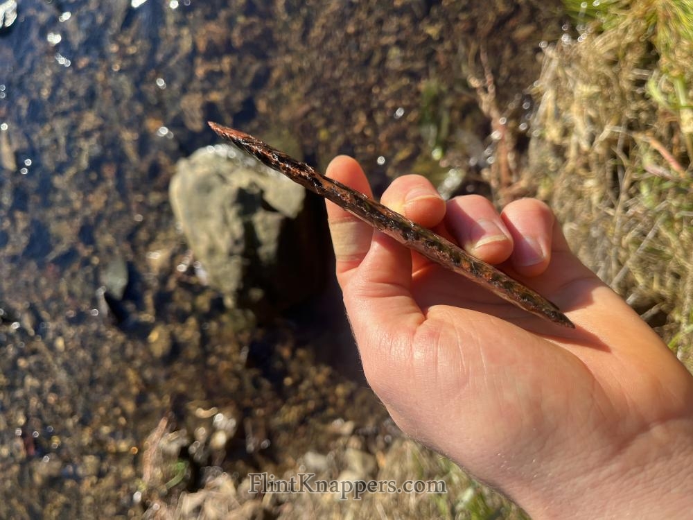 Solutrean laurel leaf point, knapped with antler and stone from French Bergerac flint |