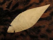 I was digging through some material in my knaping stuff and came across this piece of what I think is Burlington Chert that was given to me. It had been roughed out into a preform so I got myself into a percussion flaking mood and made this, a Fulton Turkey Tail blade. Not something I normally do as I prefer western lithics but then its fun to mix things up and see how thin one can get the rock without breaking it. It didn't go for extreme thinness on this but its still pretty thin. Just a plain vanilla white but if this thing was hafted it could cut up a deer easily as I finished the edge with pressure. |