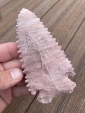 Made with a cool banded piece of Burlington. Colors are pink/purple.