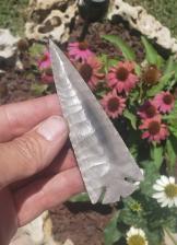Here is a super nice Elko point made from Georgetown flint from Texas. It displays very symmetrical flaking and super thin edges. Thanks for viewing |