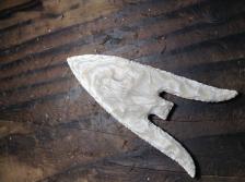 an unusually large Gunther point, just because. made from a Georgetown cortex flake and worked with copper indirect and pressure. the banding isn't as strong as the pictures make it appear, but it is still there. |