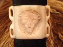 The scabbard is also hand carved out of a gorgeous piece of Ebonyr showing beautiful figure. The fittings on the scabbard are Giraffe bone, and the Lion carved into the scabbard fitting is based on a stone carving of a Lion from Rome.
