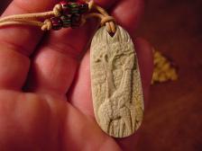 Offered here is a beautiful African Butterstone carving with a scene of Giraffe love where a mother Giraffe is reaching high above her head to get food for her waiting baby, the carving is very detailed and the stone is polished like glass . This is made into a necklace but not limited to that as it could be a broach, it could even be bezeled in silver or gold.