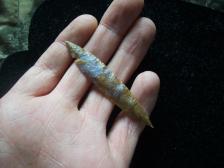 I Knapped this Little Adena Style point out of some of the same Golden Moss Agate as corner notch point. What paterns in this material.Mezmerizing.Thanks for you trust and confidence and have a good day. |