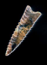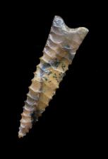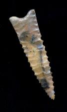 Here we have a four inch Dalton made from Golden Sage from the Northwest. Two of the photos are real color and two are solarized images. They seem to show the flak scars well when done right. Hope you enjoy. |