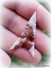 Goldfield Jasper from Nevada often has some great patterns and colors, like this one with its lavender, grey, and red banding.  I heat treated the stone before flintknapping the arrowhead, and signed & dated it with diamond tipped scribe.