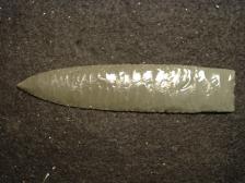I Knapped this point out of some Green Obsidian from Burns Oregon Area. Knapped in the style of a Eden point. Both sides pictured.Thanks for looking and have a good day. |