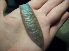 I Knapped this Eden style blade out of some Awsome Greenish Agate. Knapped the fog method(flake over grind) Didnt come out bad, I havnt done many the fog method, kinda feels more like a lapidarist than a Knapper but the results are nice.Thanks for your trust and confidence and have a good day. |
